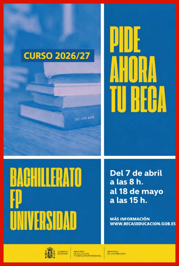 Convócanse as bolsas para o alumnado que, no curso académico 2026-2027, vaia cursar ensinanzas postobrigatorias en todo o territorio nacional: Bacharelato, Formación Profesional e estudos universitarios.