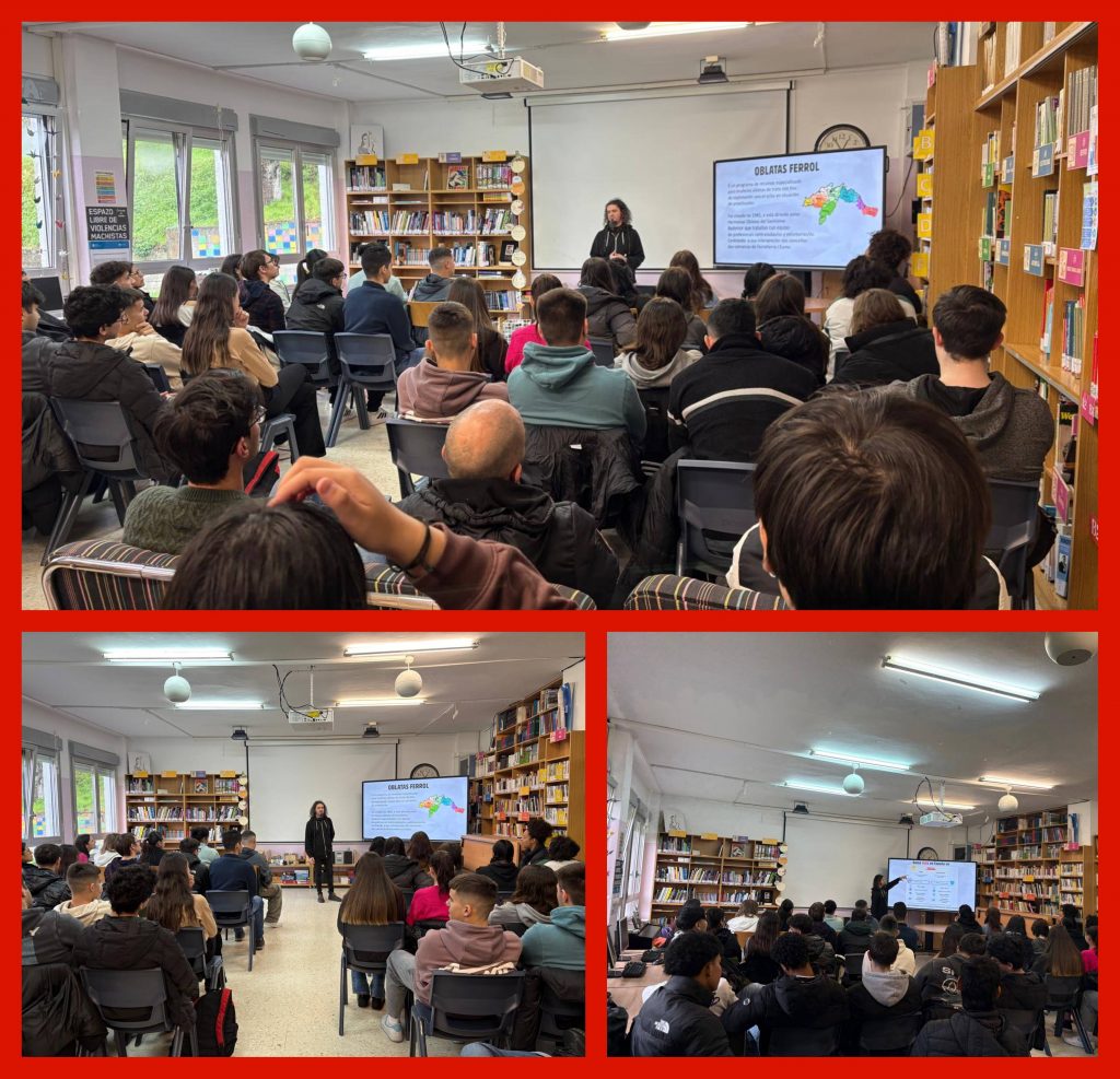 A sesión foi impartida pola entidade Oblatas, que traballa con mulleres prostituídas e en situación de trata. O obxectivo foi achegar ao alumnado a dimensión desta problemática social, que afecta especialmente ás mulleres máis vulnerables, e promover unha reflexión colectiva sobre as causas, as consecuencias e o papel que cada persoa pode desempeñar na súa erradicación.