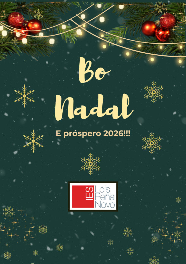 Todo o persoal do IES Lois Peña Novo deséxavos un Bo Nadal e un Próspero Ano 2026!!! 🎄✨